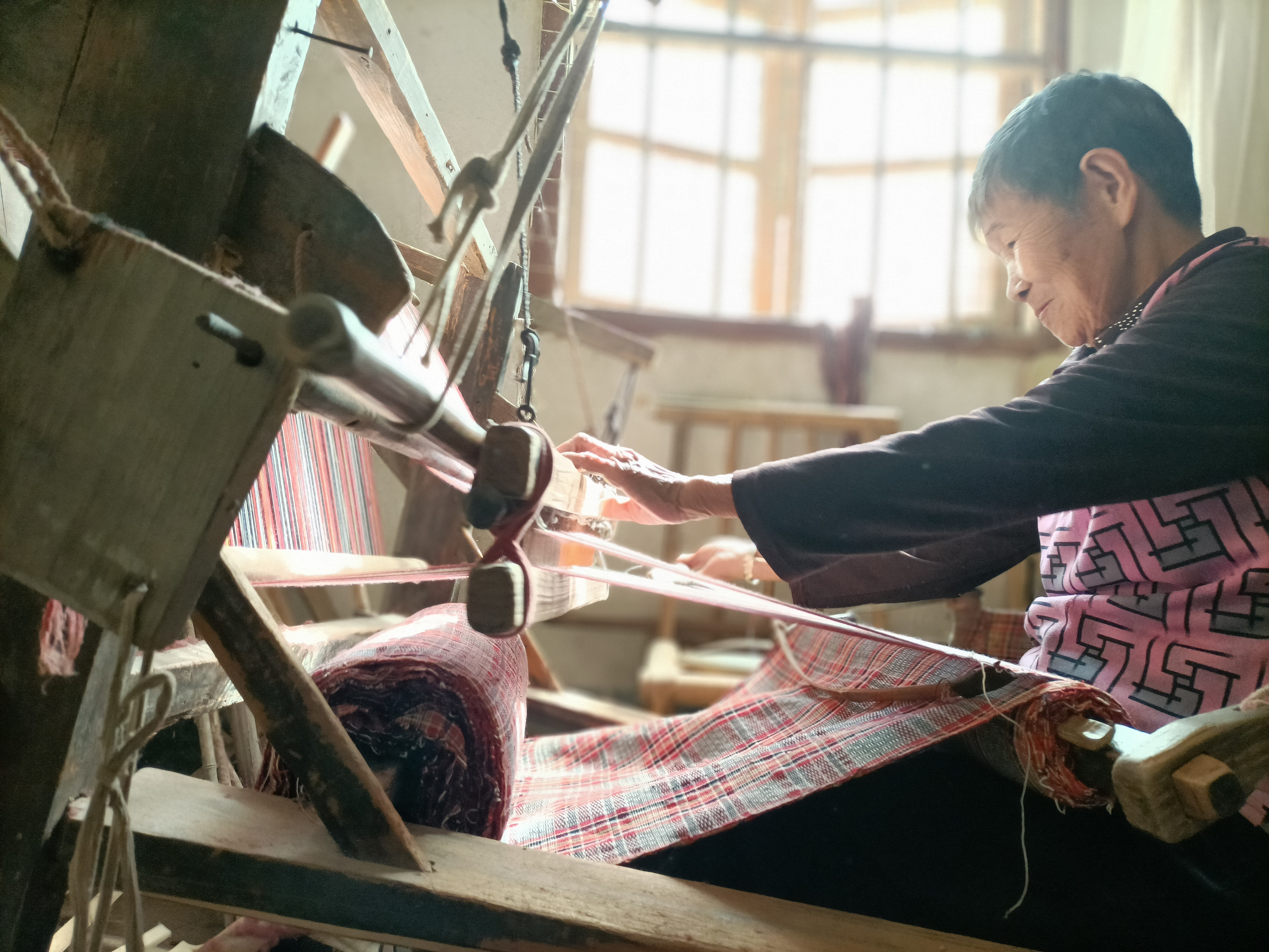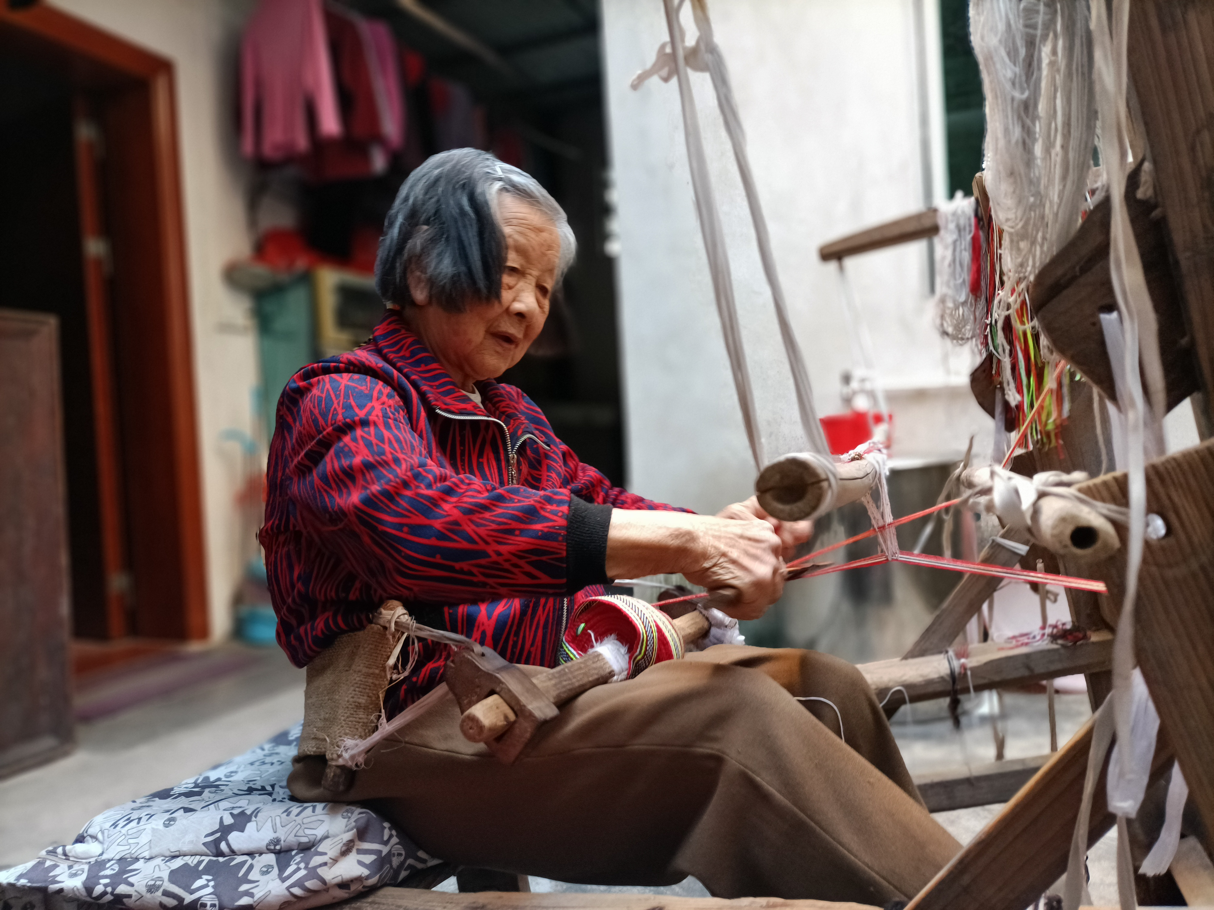 传统技艺《翁源客家织锦制作技艺》 作为韶关市民间传统民俗技艺“非遗”项目之一具有悠久历史。史传客家织锦技艺,始于传统服饰装饰,由初始的彩色丝线与锦线穿梭编织构成简单线条图案,发展至在服装包括衣帽、鞋袜及儿童穿戴、饰品上直接绣织,织锦艺术由技艺而生新品,由构思而生图案、花样百出,传承不断。翁源客家织锦呈现出了显著的地域性,在民间的传承具活化、流变性和广泛性。