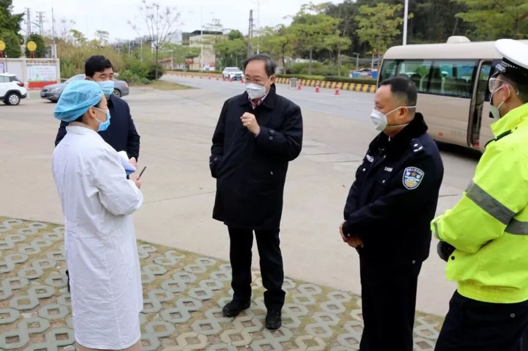 27日,市长殷焕明率我市公安、交通运输等部门检查新型冠状病毒感染的肺炎疫情防控工作,强调要充分认清当前疫情防控形势的严峻性,公安、交通运输、卫生健康等各有关部门要紧密配合形成强大合力,切实加强来韶车辆信息登记、人员体温监测等防控排查工作,要将各项防控排查措施做细做实,坚决防止疫情输入、扩散和蔓延,切实维护人民群众健康和生命安全。