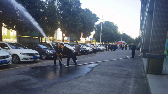 为检验理论学习成效,强化实操技能,培训活动后组织了灭火技巧讲解、操作示范与实战演练。活动紧扣“处置初起火灾”与“消防栓使用技巧”两大关键环节,模拟真实火情场景。首先,讲解员介绍室内/室外消防栓结构、适用场景,强调“水带不弯折、多人协作、对准火源根部”等核心要点。其次,在示范环节,示范小组演示消防栓标准操作步骤(开箱→展开水带→连接接口→开阀灭火→关阀归位),同步展示水带盘卷方法(对折→错位20-30cm→中间卷起)。最后的实操环节由参与者4人一组分工协作(开阀者、拿水带者、水枪手、软管操作者),进行模拟实操,指导人员现场纠正不规范动作。在专业指导下,参训人员均能熟练操作消防栓,进一步夯实了单位消防安全群防群治的工作基础。