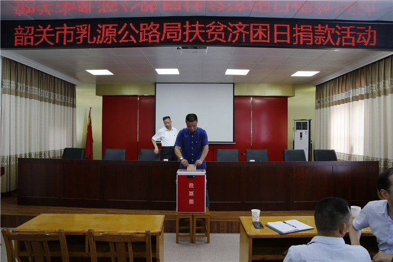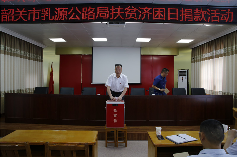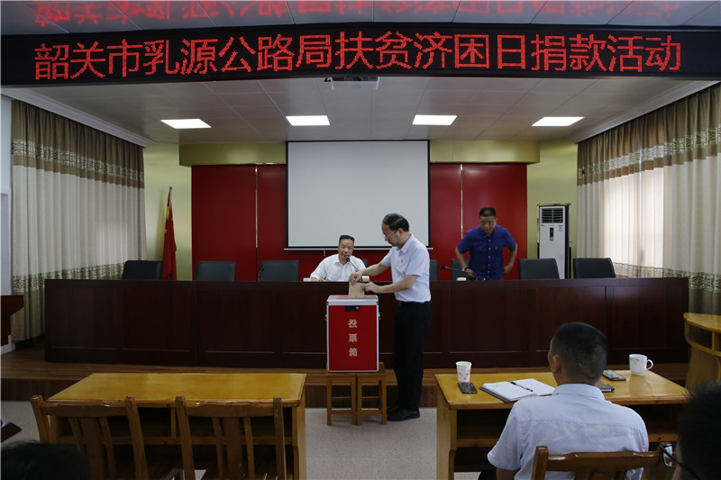 7月1日上午,乳源公路局在机关八楼会议室举行2019年“广东扶贫济困日”活动捐款仪式,局领导班子、机关全体人员及养护所副所长以上人员到场捐款,以实际行动参与扶贫济困。分管精准扶贫工作副局长陈健萍主持仪式。