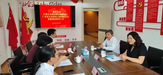 5月31日,中国公证协会副会长周志扬、广东省公证协会副会长兼秘书长王映明一行到我市调研公证工作,市司法局副局长李丽冰陪同调研。