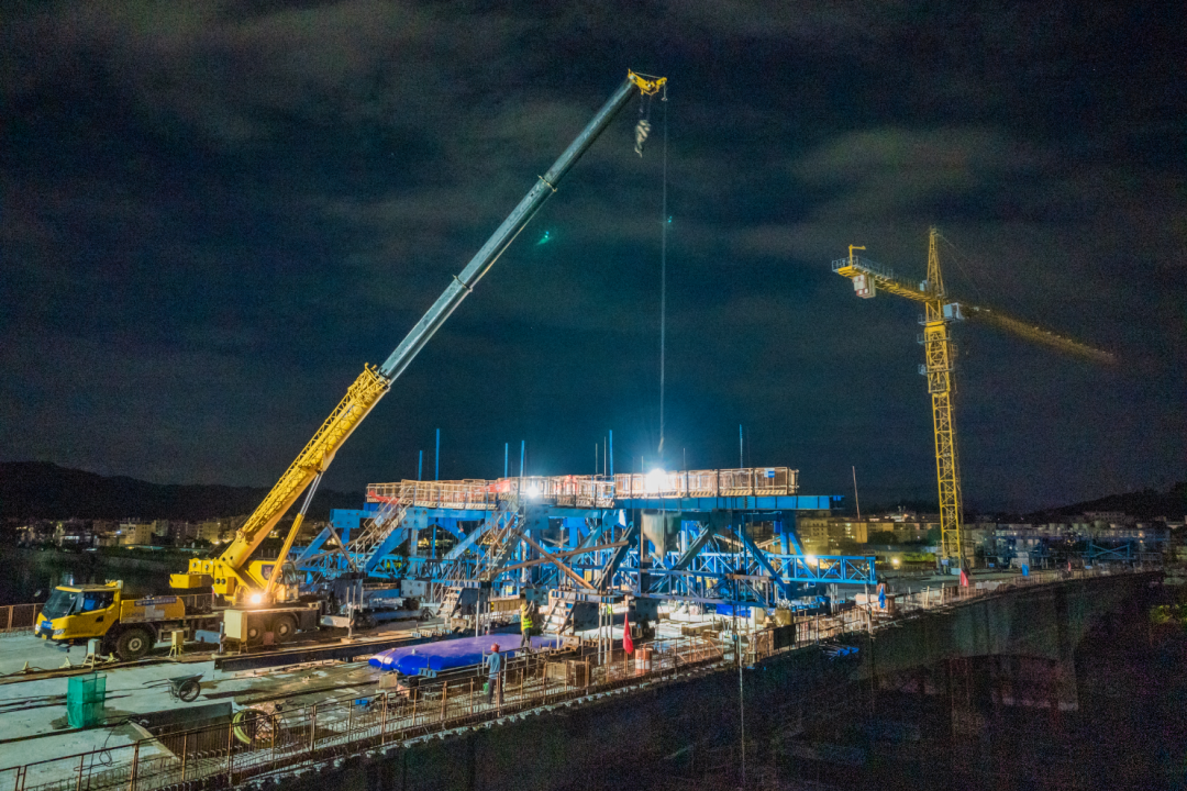 今天(9月11日)凌晨4时许,韶关丹霞大桥建设现场迎来关键里程碑。随着最后一方混凝土精准注入主桥右幅合龙段,主桥右幅顺利合龙,标志着丹霞大桥主桥正式实现双幅合龙。