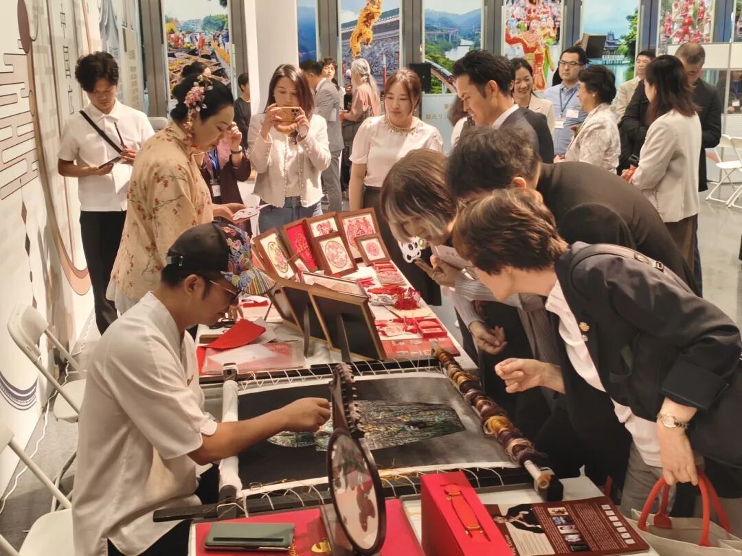 粤港澳大湾区世界级旅游目的地推介会上,推介人从“舌尖粤味”入题,从粤式早茶的精致点心讲到丹霞山的世界自然遗产,从珠海大剧院的海岛风情讲到港珠澳大桥的工程奇迹,从广东地区生产总值连续36年居全国首位的活力讲到粤剧、古琴艺术等非物质文化遗产的韵味。通过“绿蓝红古”四色,将广东的“绿”美山水、“蓝”海传说、“红”色激情、“古”韵岭南娓娓道来。曾被改编成日语版《遥远的梦》的粤语流行歌曲《海阔天空》唱响舞台,引发日本观众共鸣;而当主持人介绍火遍全球的网络热歌《大展宏图》的前奏旋律正是来自广东粤剧经典唱段,大家饶有兴趣地欣赏起传递岭南文化韵味的广东音乐代表作《彩云追月》,其曲词借岭南春景起兴,生旦对唱层层递进“天下同欢、携手向前”之意,一曲演罢,现场爆发出热烈的掌声。现场设置的“岭南非遗体验区”,营造出“可看、可品、可感、可玩”互动体验场景:广东剪纸大师巧手翻飞,顷刻间幻化出栩栩如生的图案;佛山木版年画传承人现场演示古朴的印制技艺,色彩艳丽,寓意吉祥;广绣传承人飞针走线,展现刺绣艺术的精细雅洁;潮州工夫茶艺师行云流水般的冲泡过程,更是将茶文化的韵味演绎得淋漓尽致。参会嘉宾频频互动、沉醉其间,对岭南非遗赞叹不已。广东文旅数字推介官——粤小文、粤小旅在推介会上精彩亮相,带大家云端畅游广东,并发出盛情邀约,再掀活动高潮。