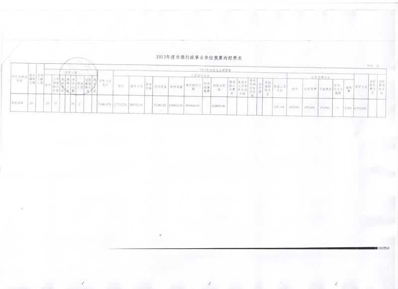 2013年市级行政单位预算内经费表
