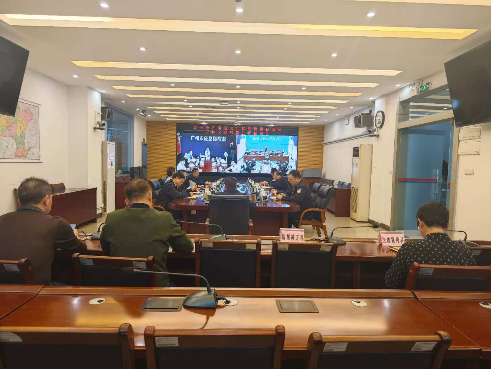 11月7日,韶关市森林防灭火指挥部办公室召开中华人民共和国第十五届运动会和残特奥会期间全市森林防灭火工作视频调度会,进一步贯彻落实省森林火险形势分析会商会精神,及市相关工作部署,确保中华人民共和国第国十五届运动会和残特奥会期间全市森林防灭火形势稳定向好。市森防办副主任、市应急管理局副局长符利民主持会议,市林业局、市公安局相关负责同志在市主会场参加会议,各县(市、区)相关参会人员在本地分会场参加会议。