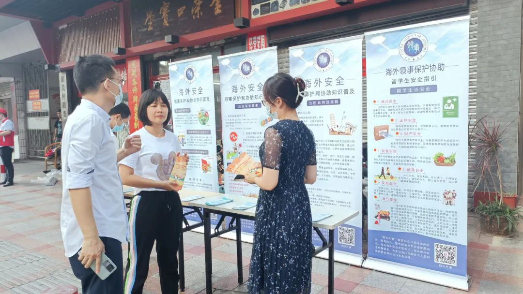 8月18日下午,市委外办在风采街道风度北社区开展预防性海外领事保护和诚信教育进社区宣传活动。