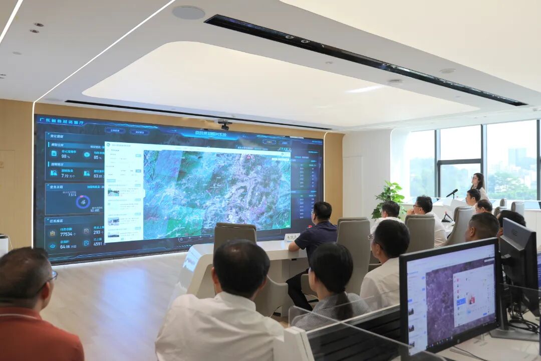 签约仪式前,韶关局一行听取了广东省自然资源综合感知服务系统的演示介绍,交流了解了综合感知服务系统的项目背景、建设成效及业务应用。