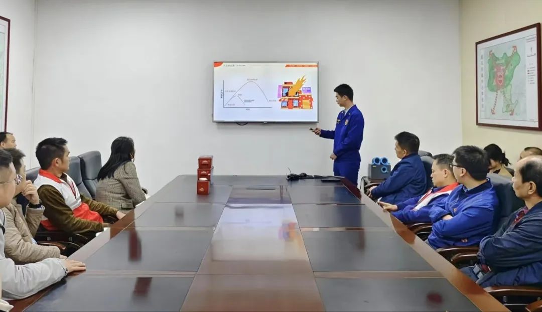 随后,蓝启良同志为大家进行消防安全知识的专题授课。他深入剖析市内各地发生的火灾事故案例,让党员们深刻认识到加强消防安全与应急处置的重要性,进一步强化杜绝侥幸心理和麻痹思想;系统讲解消防知识,结合工作生活环境介绍火灾防范要点、自救方法及逃生技巧,提升党员们的防火灭火和逃生自救能力;着重讲解消防器具的正确使用方法,开展实操练习并对党员们进行一对一指导,切实提升应急处置能力。