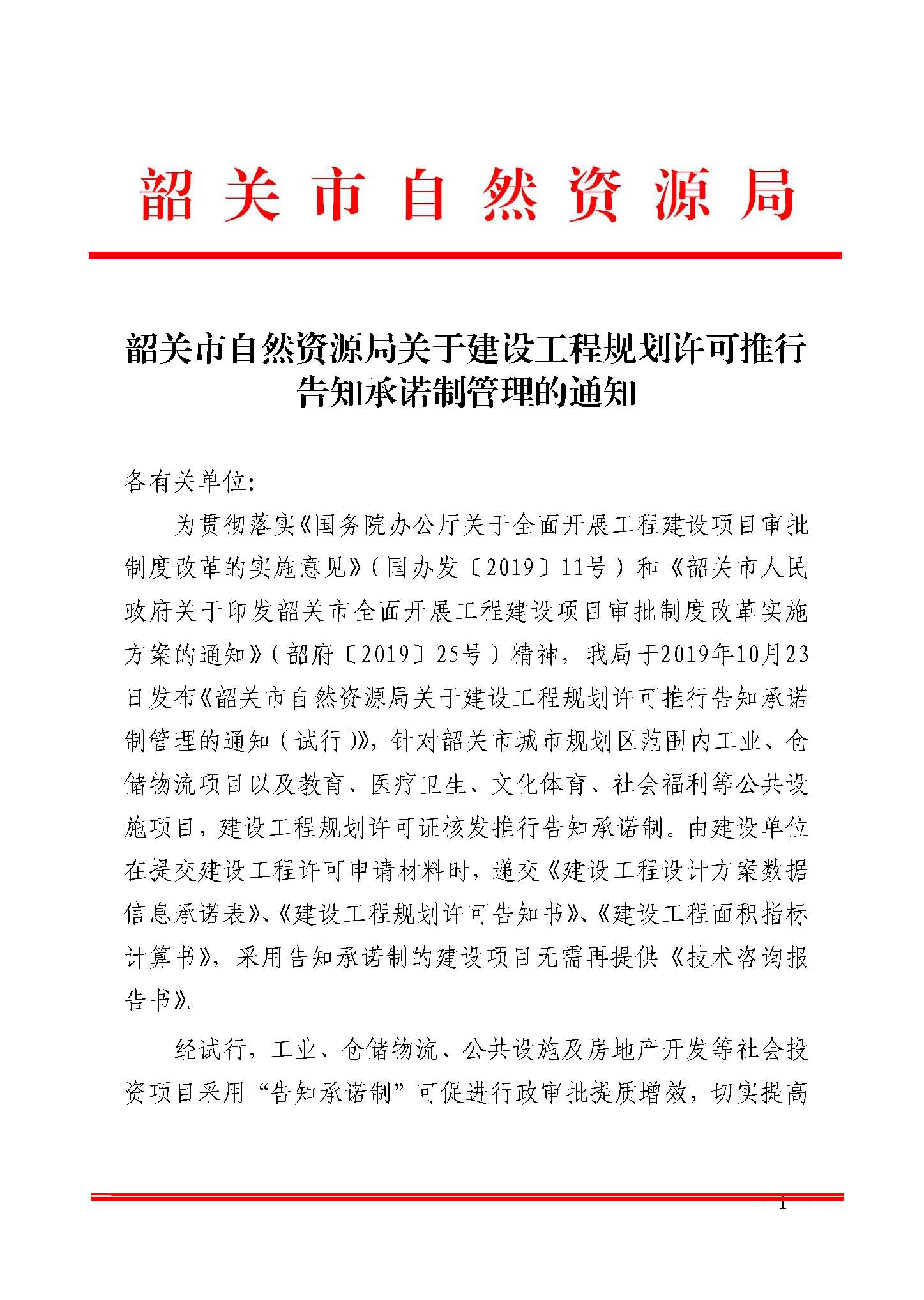 韶关市自然资源局关于建设工程规划许可推行告知承诺制管理的通知