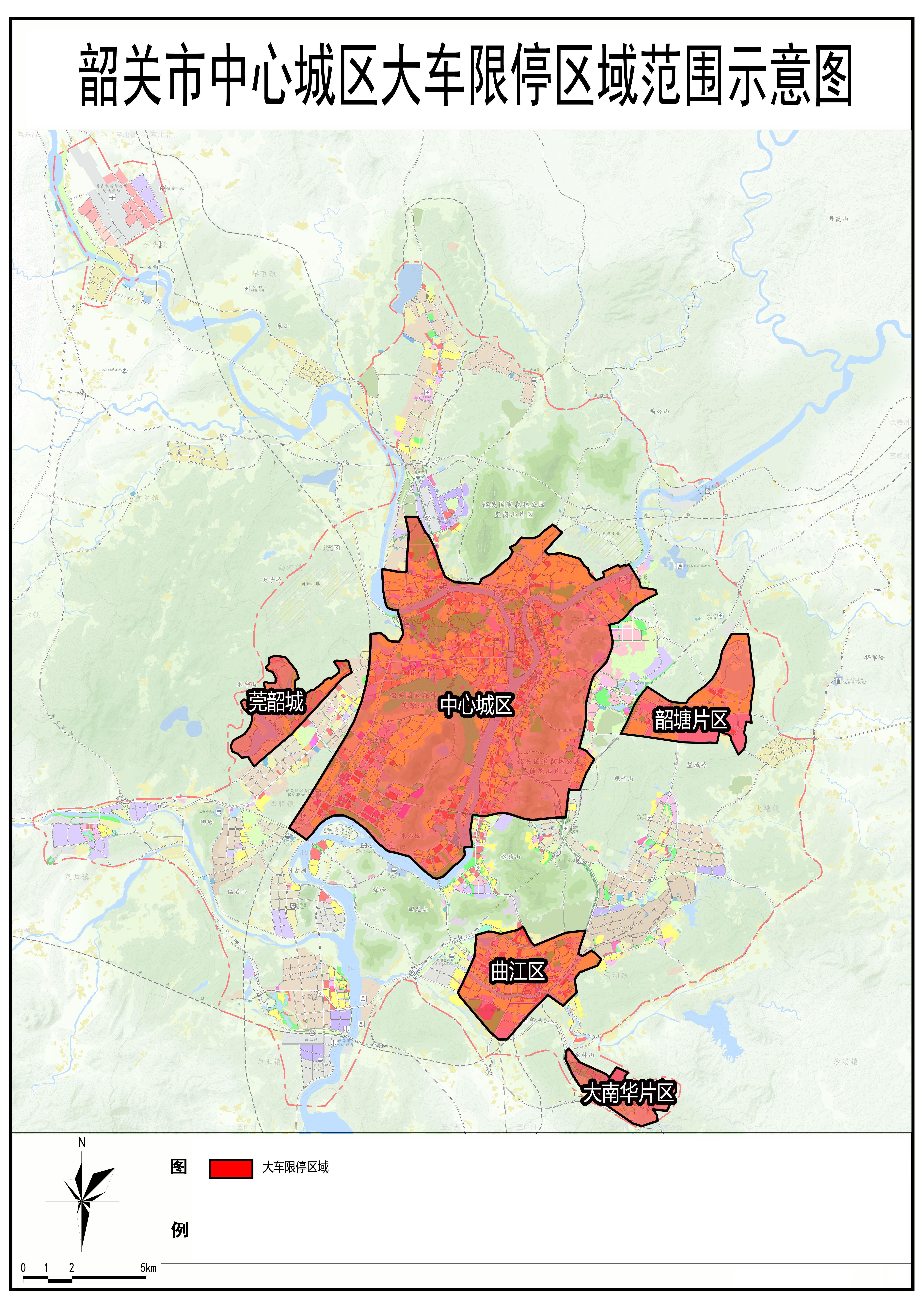 1.根据《韶关市中心城区大车限停区域范围示意图》(详见附件1),红线范围内合法的大车停车场要逐步迁移,新建的大车停车场不可在限停区域范围内设置。