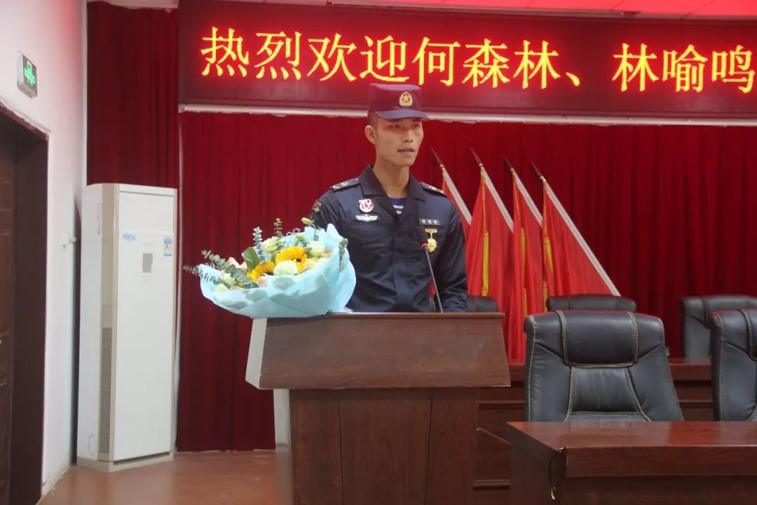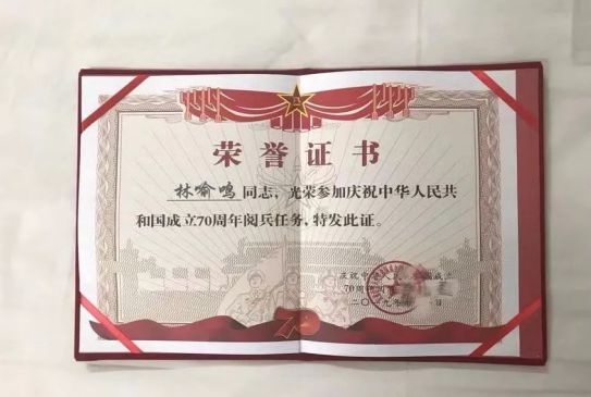林喻鸣同志于2013年通过曲江区征兵宣传加入了军营队伍。当年,在没有和家人商量的情况下,林喻鸣自行报名参加了征兵体检。后来父亲知道了儿子当兵的事情,不但没有反对,反而大力支持。9月,当把一身军装的林喻鸣送到武装部时,父亲嘱托到“儿子,我是个中共党员,你是党的儿子,好好扛枪保家卫国,别给家乡人民丢脸”。