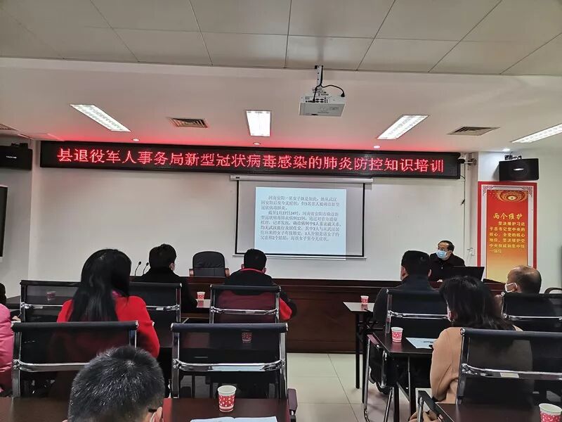 为提高仁化县退役军人事务局干部职工对新型冠状病毒肺炎的防护意识,增强对新型冠状病毒肺炎的了解认识,更加有效指导社区和村居疫情防控工作,1月31日,县退役军人事务局举行了新型冠状病毒肺炎防控知识培训,县人民医院医生进行讲解授课。
