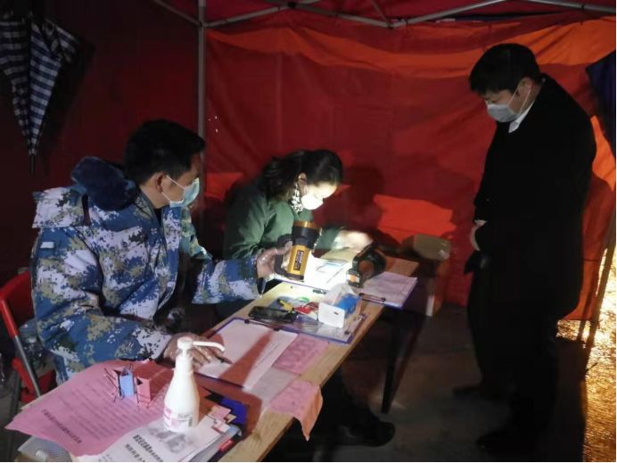董塘镇有60名退役军人主动奔赴防疫工作一线,在重要地点布点设卡进行检查,对往来人员进行体温测量、检查工作,确保内防扩散、外防输入。