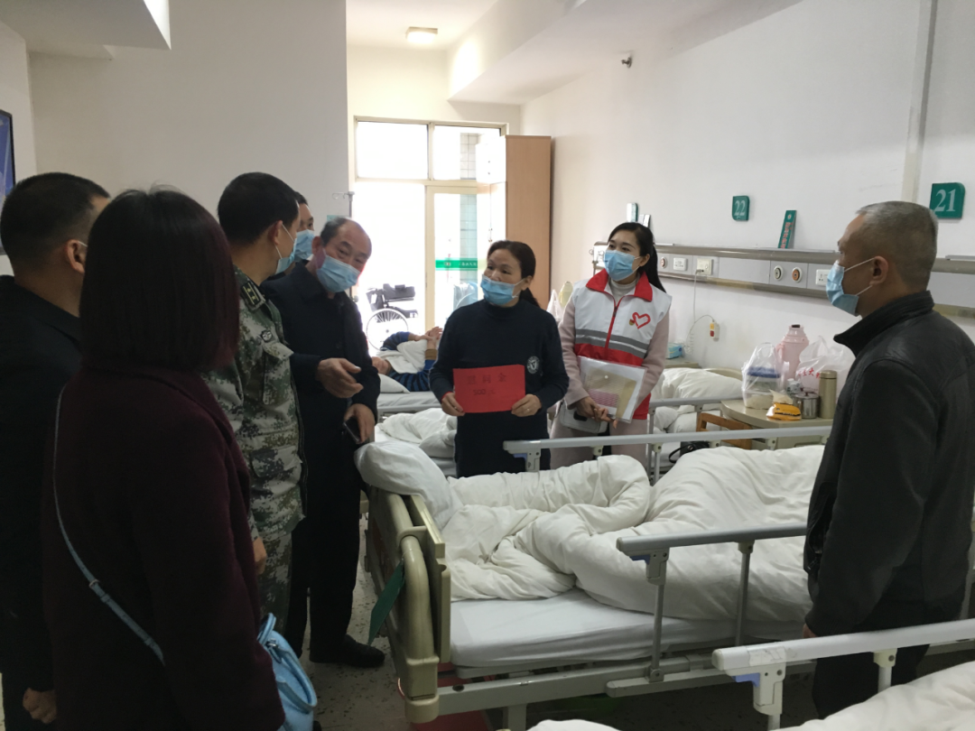 “车祸发生得太突然,我们的心情既焦灼又痛苦,没想到区退役军人事务局领导这么关心,还帮助我们办理索赔事项,真是太感谢你们了!”说这话的是武江区现役军人赖方的父亲,他拉着该区退役军人事务局领导的手激动不已。 事情还得回溯到3月19日晚,赖方的母亲被飞驰的汽车撞成重伤,被紧急送往医院抢救,4月8日进行了手术治疗,目前仍在重症病房医治。肇事司机和车主只垫付了2万元医疗费,赖方母亲自行垫付了5万元。该局在开展疫情防控宣传工作时偶遇现役军人赖方及其父亲得知此事后,立即跟赖方同志取得联系,并协助其到武江区法院立案庭、交警队咨询交通肇事、财产保全申请及其他事项,目前法院已办理好相关手续,并将对肇事车辆进行财产保全,交警部门已将肇事车辆扣留,车辆保险公司根据治疗进度支付6万元。 3月31日,该区退役军人事务局领导会同区武装部领导、惠民街道及社区干部前往粤北人民医院看望现役军人赖方母亲,于是便出现了文中开头的感人一幕。 当天慰问领导还看望了该区现役军人李旭的母亲。据悉,李旭是2019年入伍参现役军人,该局从其母亲的老乡口中得知其父亲于2016年被诊断出尿毒症,目前在深圳治疗,靠三天一次透析来维持生命,其母亲也于2020年3月6日经粤北医院被确诊患“脑动脉瘤”,目前还躺在ICU的病床昏迷不醒,原本幸福的家庭顿时陷入窘迫的境地。 慰问领导详细询问了李旭的家庭情况,叮嘱其母亲好好保持乐观的生活态度,配合医生治疗,战胜病痛,并送上慰问品及慰问金,把党和政府的温暖送到他们心间。 病痛无情,人间有爱。该局秉着“维护军人合法权益、全心全意为军人军属排忧解难”的初心,积极采取行动,与镇(街)对接详细了解情况,要求要把符合救助帮扶条件的政策尽快落实到2位现役军人家庭中。