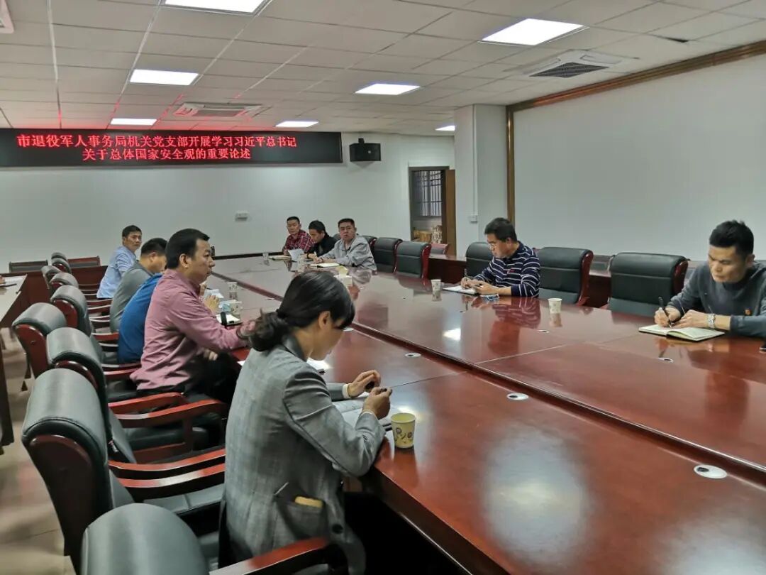 局机关在局办公大楼电子屏上滚动展示“坚持总体国家安全观,自觉维护国家主权、安全和发展利益”“国家安全、人人有责”“保守国家秘密、维护国家安全”等国家安全宣传标语、口号,同时发动退役军人事务系统全体干部职工登录“韶司在线”微信公众号,观看“国家安全 关系你我”系列专题,提高全员重视国家安全和保密意识,营造全民维护国家安全的良好社会氛围。