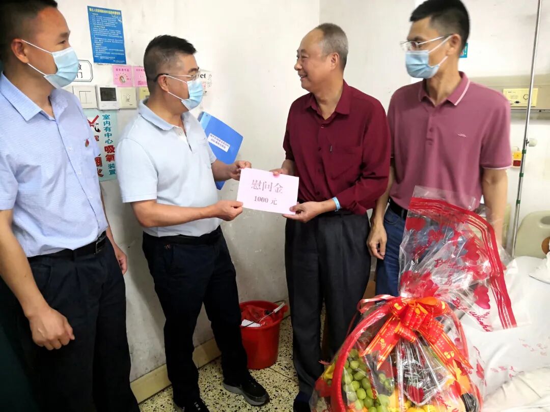 随后,慰问组认真听取了郭伟强院长和孙英培同志的主治医生介绍其病情状况,仔细询问了治疗方案和治疗效果,叮嘱医生一定要用最适合的药物进行治疗,保障孙英培同志的医疗待遇,并给孙英培送上了慰问金。郭伟强院长表示,将集中全院最强大精干的医疗队伍,必要时请相关专家会诊,拿出最好的治疗方案,尽全力为英雄治疗。