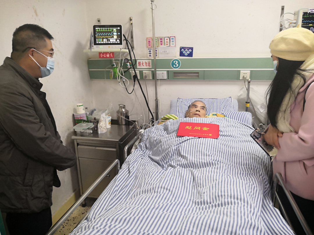 12月2日,韶关市退役军人事务局局长梁祖超与武江区退役军人事务局主要负责同志一行前往市第一人民医院,看望抗美援朝二级英雄烈士余贵的妹妹余爱秀老人,向老人送上诚挚的关心和问候。