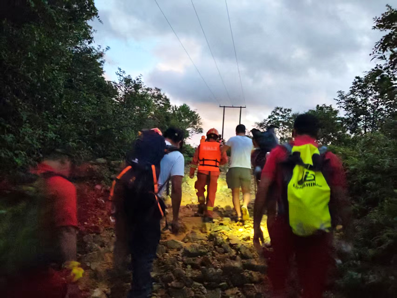 服务队立刻给伤者进行了简单的身体检查,确认其伤情较为稳定,随后为伤者提供食物和饮用水补充体力。接着,队员们搀扶着伤者,一步一步地艰难下山。终于,在他们的不懈努力下,经过近40个小时的连续作战,伤者被顺利送到山下并紧急送医。