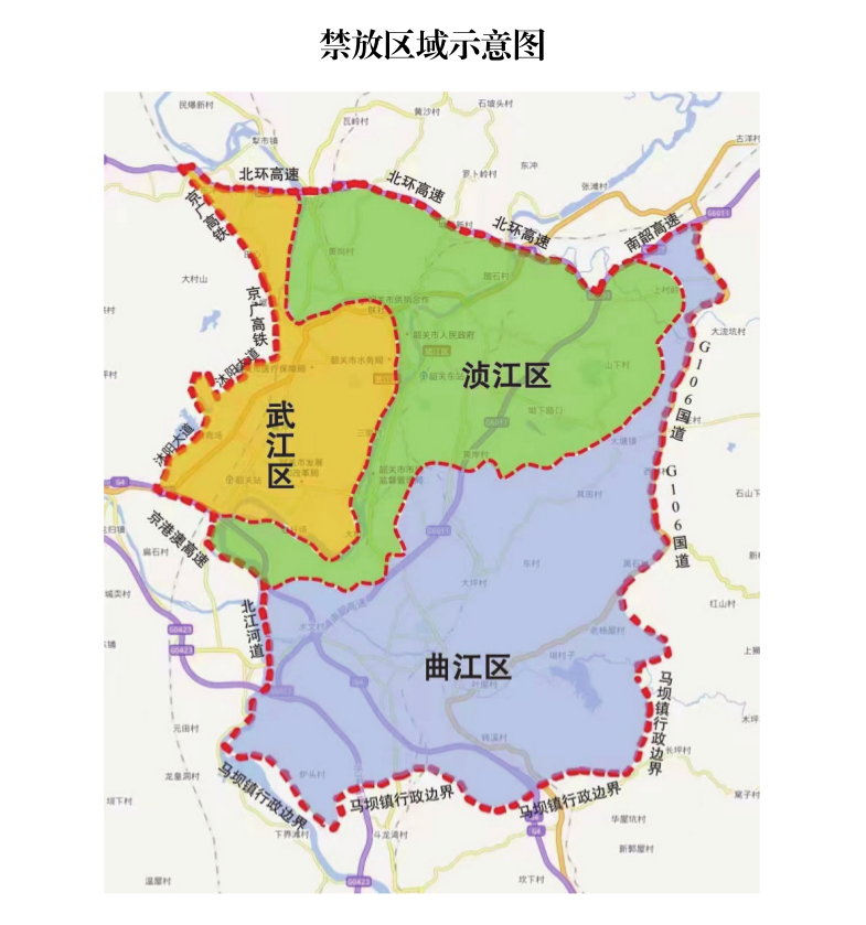 (一)浈江区:由北江河道经武江河道、韶关北环高速、南韶高速至浈江区行政界线所围成的区域;