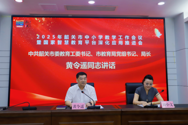 为深入贯彻落实习近平总书记关于教育的重要论述和全国教育大会精神,全面执行教育部关于推进教育数字化转型的战略部署,紧紧围绕“深化应用、融合创新”这一核心任务,以平台应用为抓手聚焦教学质量提升、以内涵建设为路径夯实育人根基,全面提升全市中小学教学质量,10月10日上午,市教育局召开2025年韶关市中小学教学工作会议暨国家智慧教育平台深化应用推进会,全面总结上一学年教学工作、部署新学年重点任务。市教育局局长黄令遥出席会议并讲话,市教育局副局长刘小文主持会议。