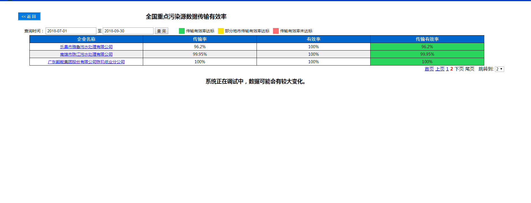 2018年全国重点污染源自动监控传输有效率(第三季度)