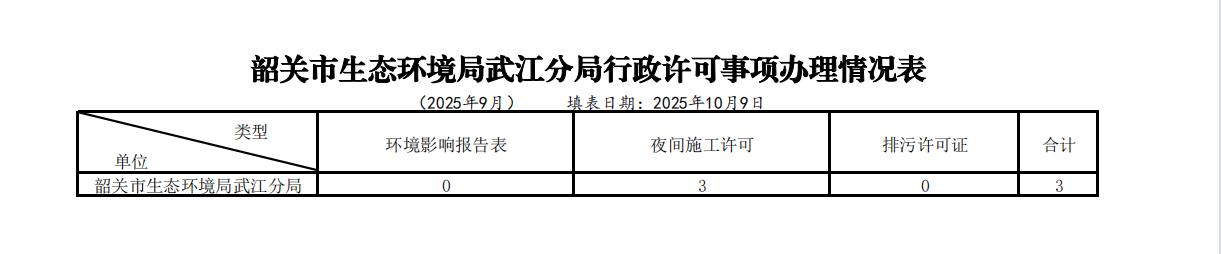 韶关市生态环境局武江分局行政许可事项办理情况表(2025年9月)