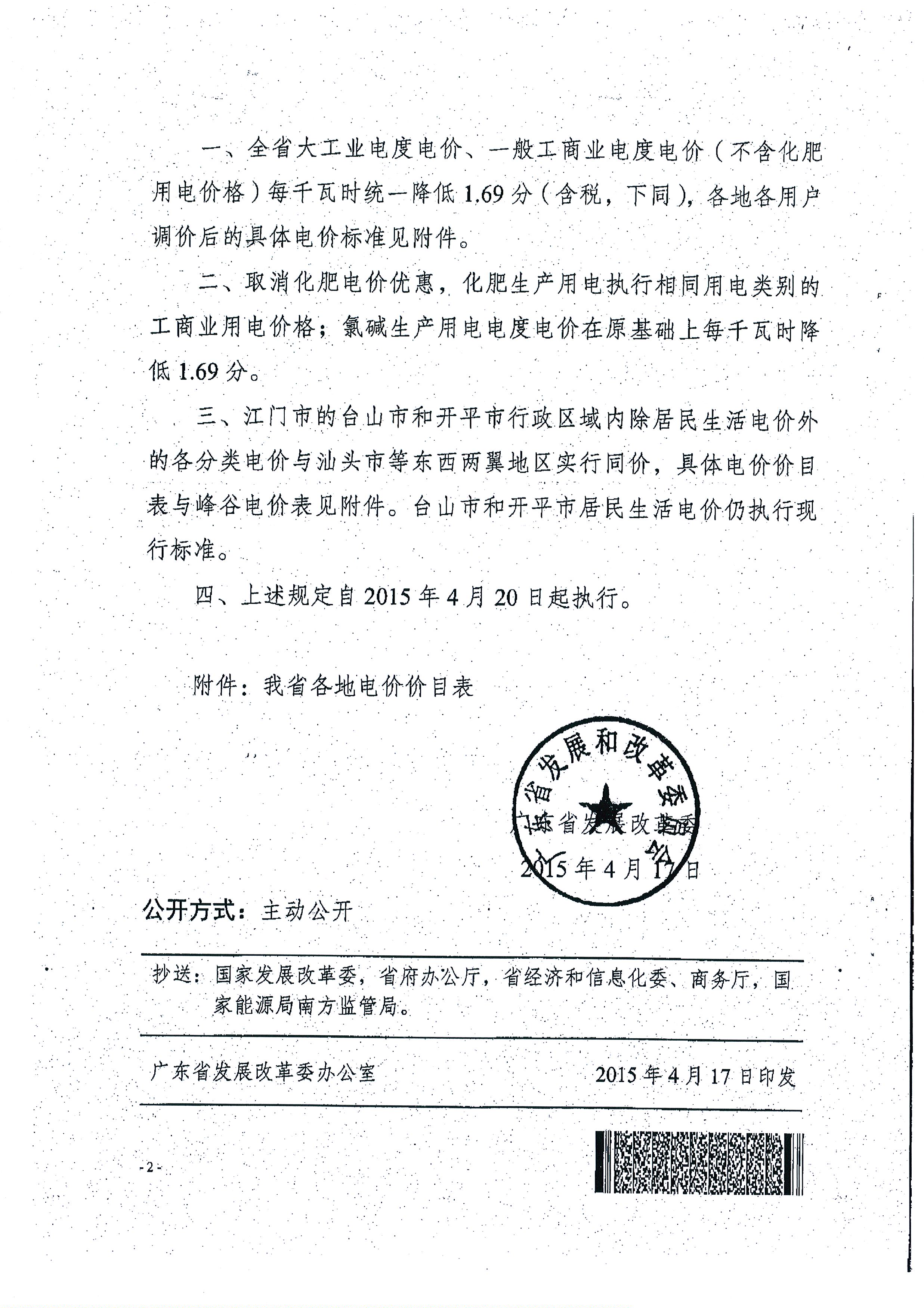 广东省发展改革委关于降低我省工商业用电价格有关问题的通知