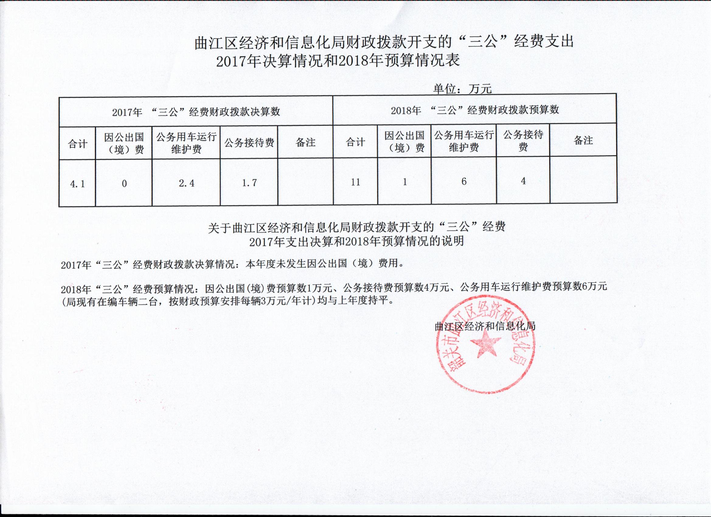 曲江区经济和信息化局财政拨款开支的“三公”经费支出2017年决算情况和2018年预算情况表