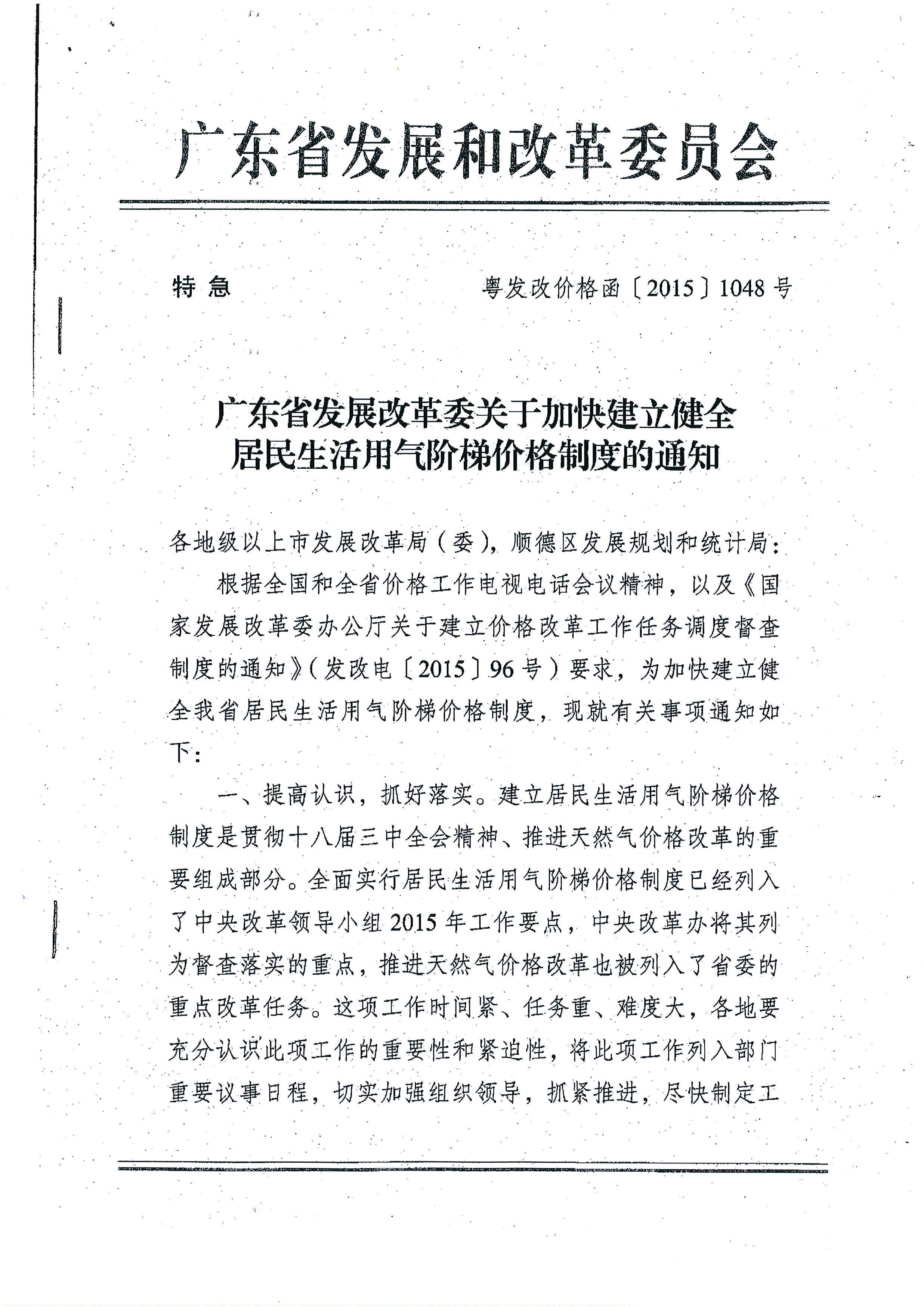 广东省以展改革委关于加快建立健全居民生活用气阶梯价格制度的通知