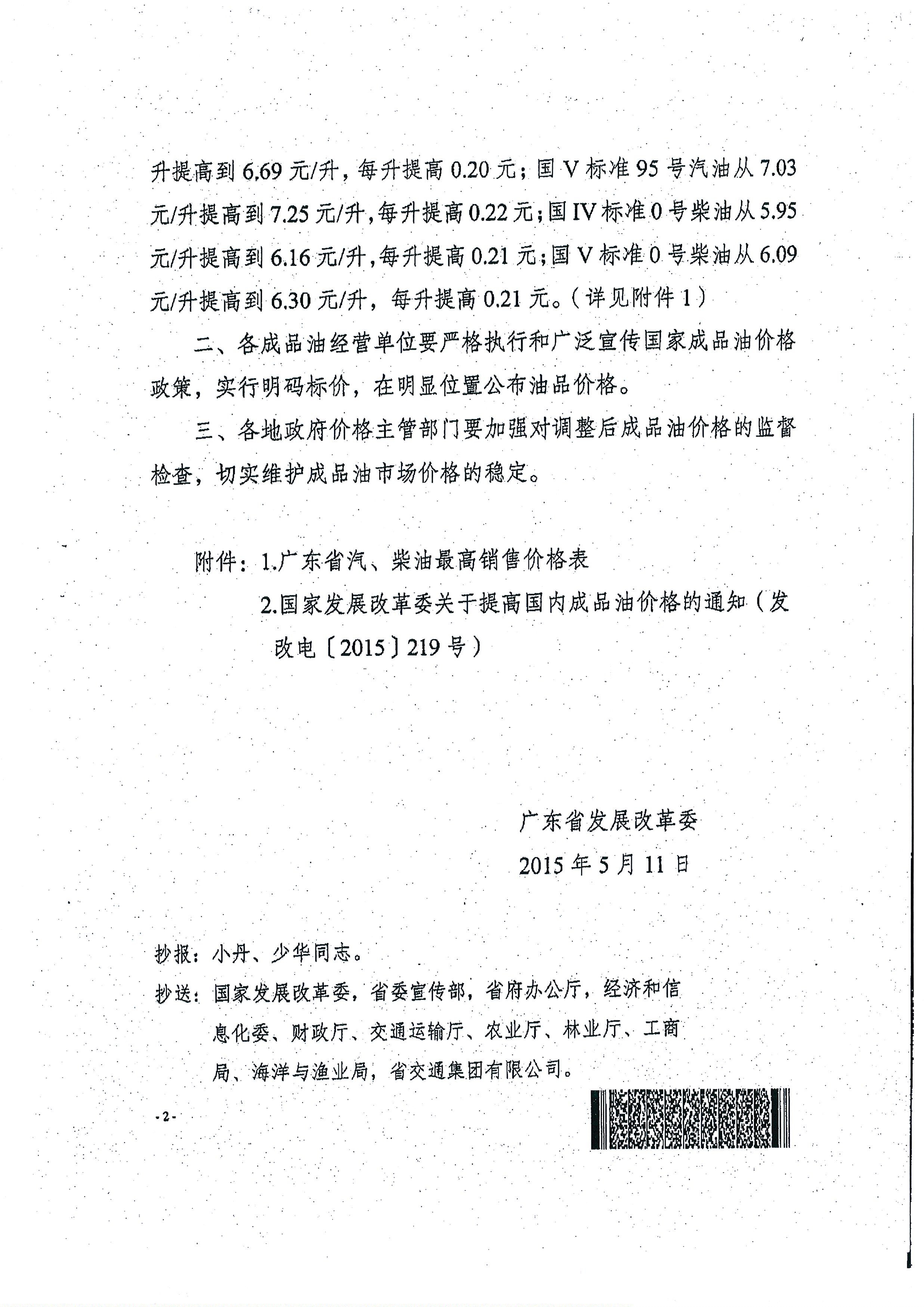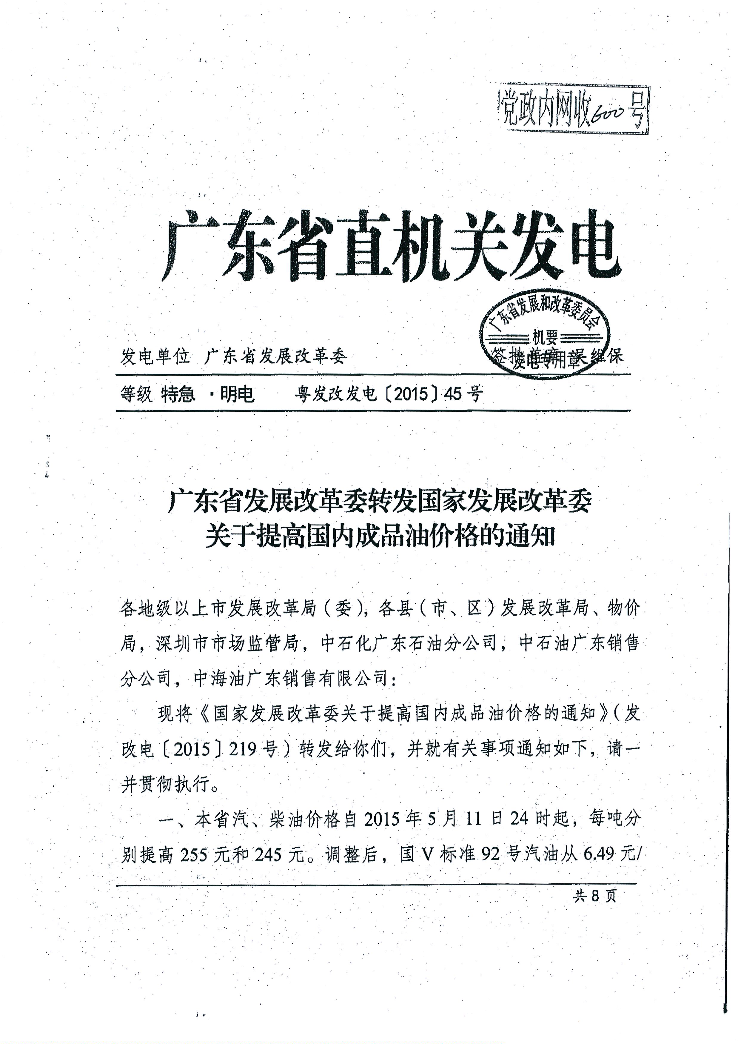 广东省发展改革委转发国家发展改革委关于提高国内成品油价格的通知